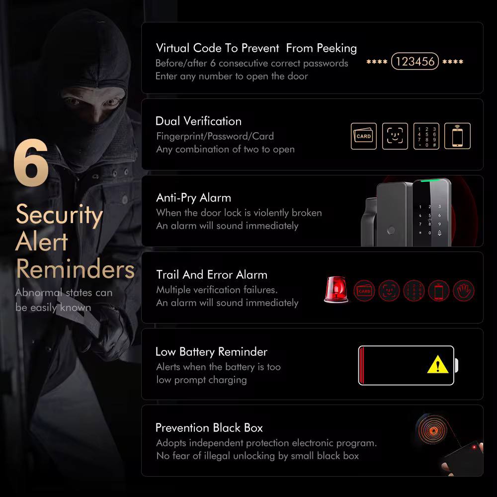 توفر حلول الأقفال الذكية لدينا إمكانية الدخول بدون مفتاح، والتحكم عن بُعد، والمراقبة الفورية، مما يجعل إدارة أمن ممتلكاتك أسهل من أي وقت مضى. بفضل ميزات مثل رموز الوصول القابلة للتخصيص والتكامل مع أنظمة المنزل الذكي، توفر أقفالنا الأمان والراحة لأصحاب المنازل والشركات على حد سواء.